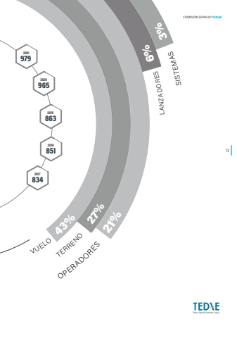 SISTEMAS3%LANZADORES62021 %202020192018201797996586385183413COMISI%u00d3N ESPACIO TEDAEOPERADORES21%TERRENO27%VUELO43%
