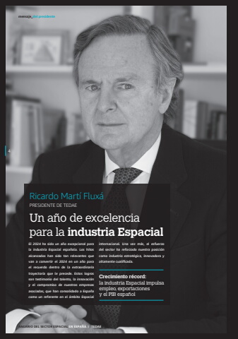 ANUARIO DEL SECTOR ESPACIAL EN ESPA%u00d1A I TEDAEmensaje_del presidenteUn a%u00f1o de excelencia para la industria EspacialPRESIDENTE DE TEDAERicardo Mart%u00ed Flux%u00e1Crecimiento r%u00e9cord: la industria Espacial impulsa empleo, exportacionesy el PIB espa%u00f1olEl 2024 ha sido un a%u00f1o excepcional para la industria Espacial espa%u00f1ola. Los hitos alcanzados han sido tan relevantes que van a convertir el 2024 en un a%u00f1o para el recuerdo dentro de la extraordinaria trayectoria que le precede. Estos logros son testimonio del talento, la innovaci%u00f3n y el compromiso de nuestras empresas asociadas, que han consolidado a Espa%u00f1a como un referente en el %u00e1mbito Espacial internacional. Una vez m%u00e1s, el esfuerzo del sector ha reforzado nuestra posici%u00f3n como industria estrat%u00e9gica, innovadora y altamente cualificada.4